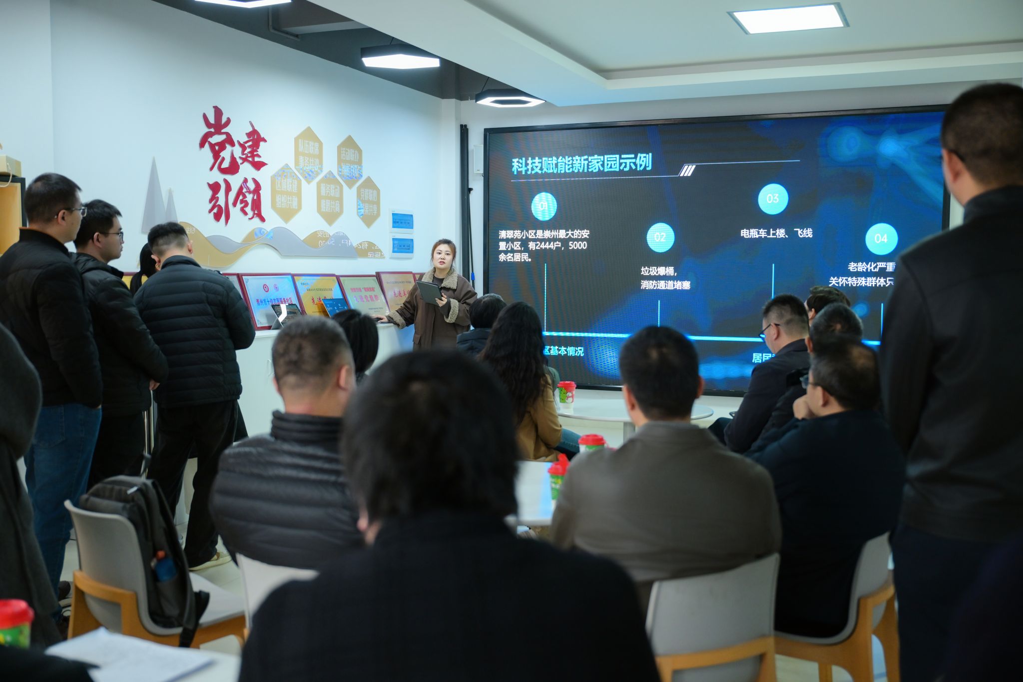 当天下午,博士团师生奔赴基层一线,开展实地教学与调研。在明湖社区,调研了智慧小区建设情况,重点观摩了服务新就业群体的“崇小新”数字化平台。在明湖科创园,调研了“园区—社区—小区”三级治理模式的运行机制。